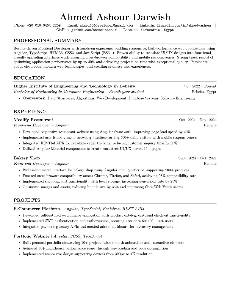أنا هنا لمساعدتك في إنشاء سيرة ذاتية احترافية متوافقة مع ATS تساعدك على تجاوز الفلاتر والوصول إلى مسؤولي التوظيف مباشرة.