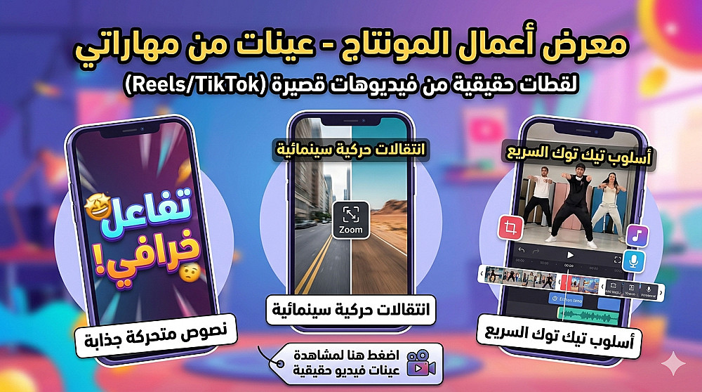 أهلاً بك! هل تبحث عن مونتاج سريع وعصري يشد الانتباه؟ أنا هنا لأحول فيديوهاتك البسيطة إلى مقاطع احترافية تناسب TikTok و Instagram Reels.