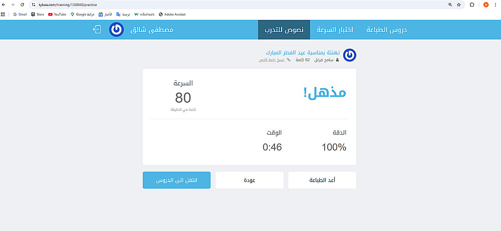أرفقت صورا في معرض الأعمال ضمن الخدمة منهم صورتين توضحان سرعة كتابتي على لوحة المفاتيح باللغة العربية وسرعة كتابتي باللغة الإنجليزية وصورتين من نماذج عمل لي وأنا أقوم بتفريغ محتوى في ملف Word.
