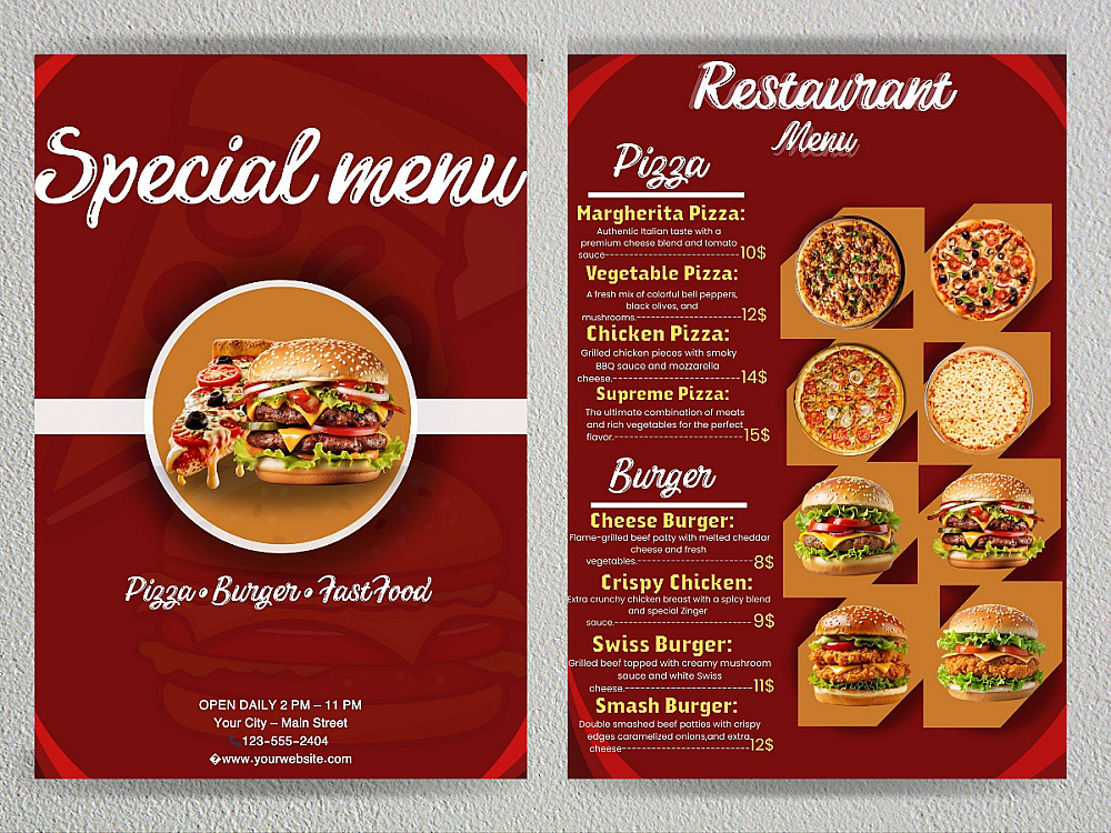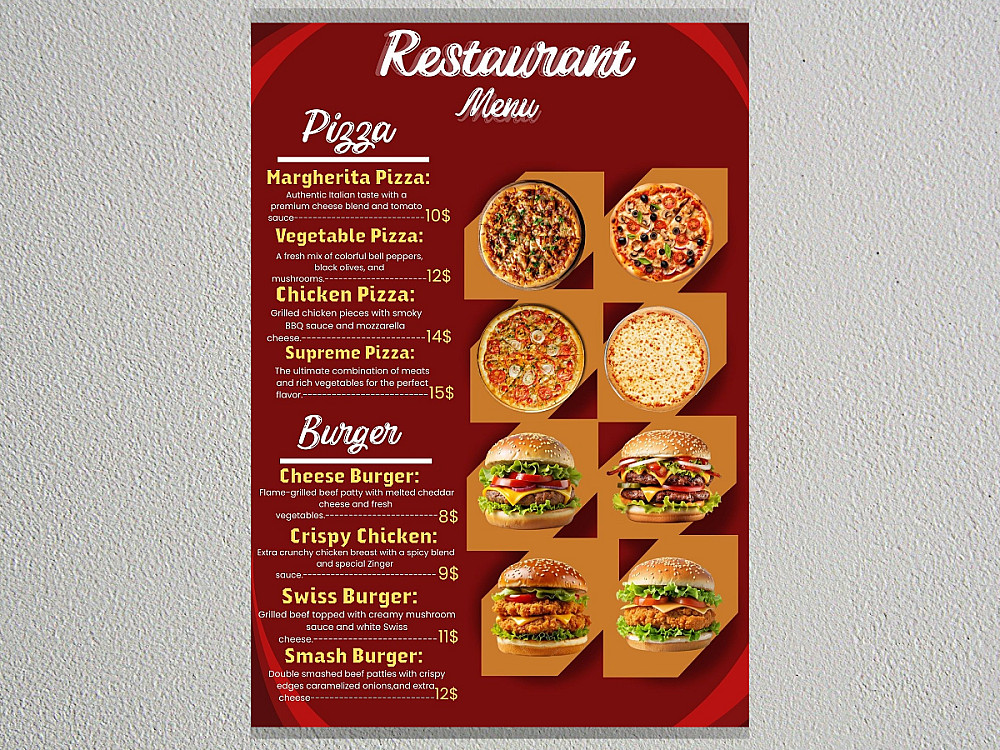 أهلاً بك! هل تبحث عن تصميم منيو يفتح شهية زبائنك ويعكس جودة أطباقك؟ أنا هنا لأحول قائمة طعامك إلى قطعة فنية جذابة.