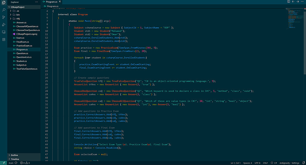 هل تحتاج إلى تنفيذ مشروع صغير أو حل مسألة برمجية باستخدام لغة سي شارب(C#) مع مبادئ البرمجة الكائنية OOP؟