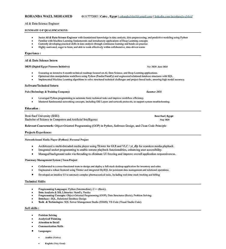 أقدم لك خدمة إعداد وتصميم سيرة ذاتية (CV) احترافية مناسبة لمتطلبات سوق العمل الحديثة، سواء كنت مبتدئًا أو لديك خبرة