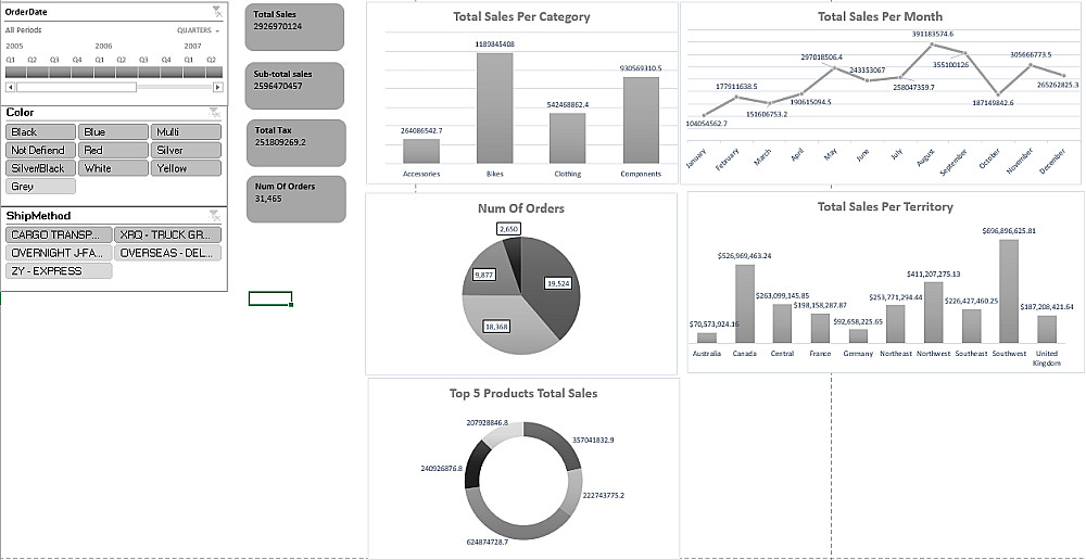 ملف لوحة التحكم (Dashboard) (على سبيل المثال: ملف Excel يحتوي على الـ Dashboard التفاعلية تحتوي علي 5 رسومات بيانية).