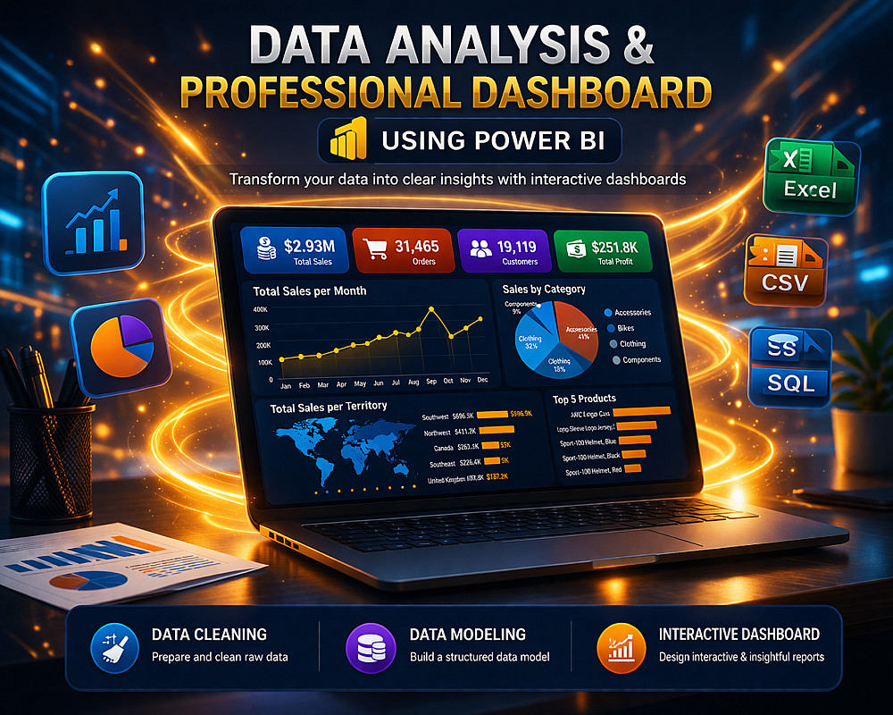سأحوّل بياناتك إلى لوحة معلومات تفاعلية واضحة وجذابة في Power BI تساعدك على فهم أداء عملك بنظرة واحدة.