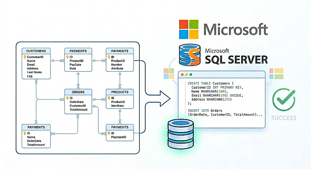 تصميم وتنفيذ قواعد البيانات (ERD + Mapping) على SQL Server
