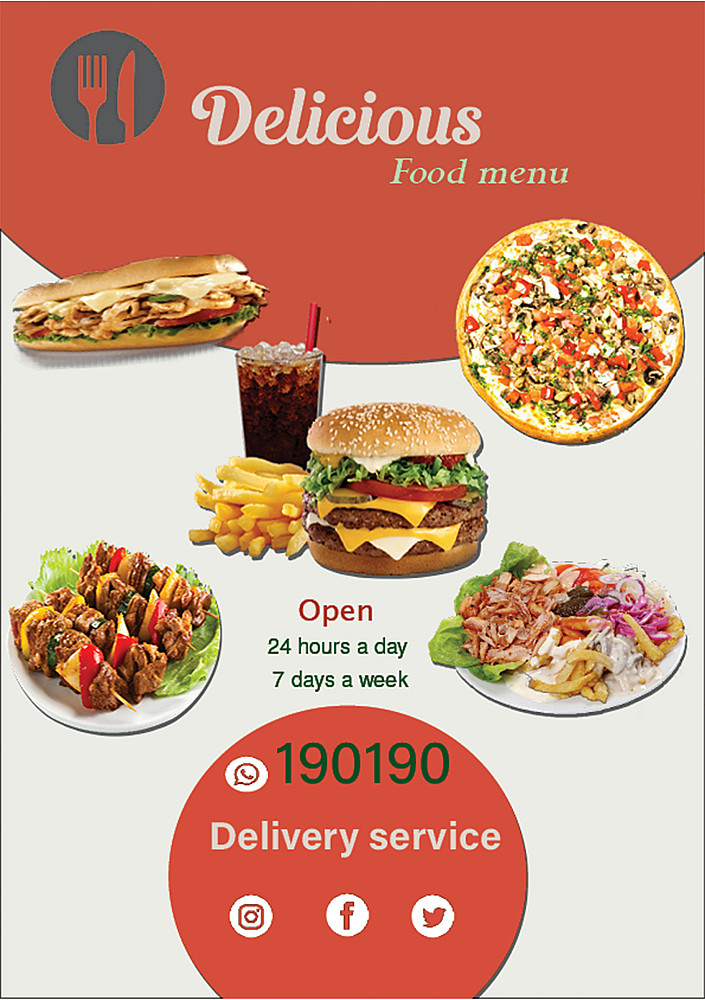 الخدمه هي تصميم منيو (لمطعم او كافية) واحد بجودة عالية ودقة مناسبة للنشر على منصات السوشيال ميديا.