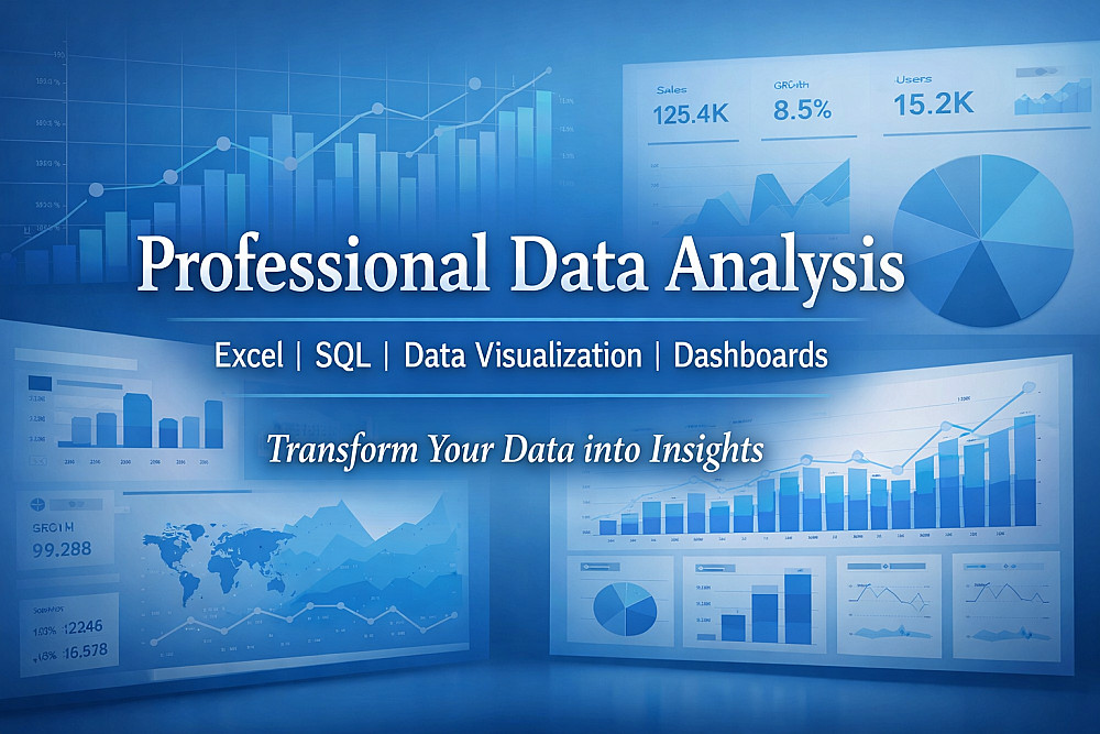 أقدم لك خدمة تحليل البيانات بشكل احترافي باستخدام Excel و SQL لمساعدتك على فهم بياناتك واتخاذ قرارات أفضل.