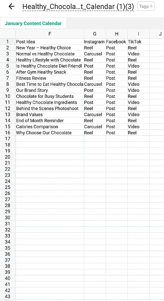ستحصل على ملف Excel منظم وسهل الاستخدام يساعدك تنشر باستمرار واحترافية