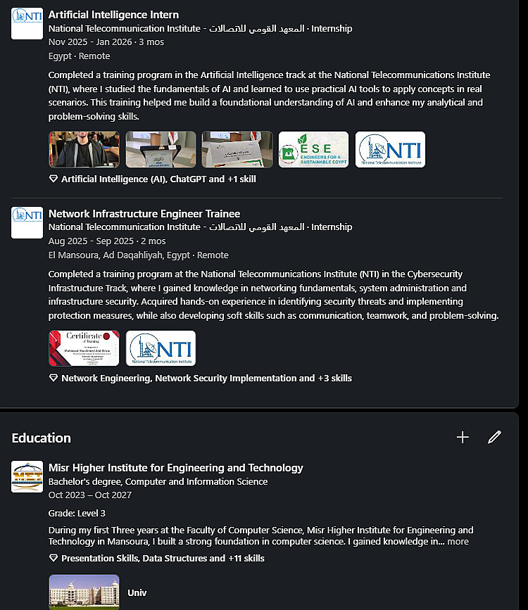 لأنني أتابع تحديثات LinkedIn المستمرة وأفهم كيف يفكر مسؤولو التوظيف (HR) وما هي الكلمات التي يبحثون عنها. هدفنا ليس فقط تعبئة بيانات، بل "صناعة هوية مهنية" تفتح لك أبواب الفرص.