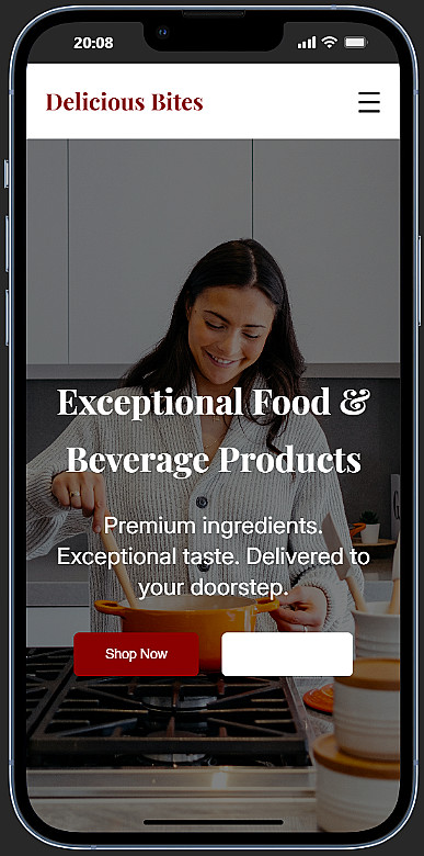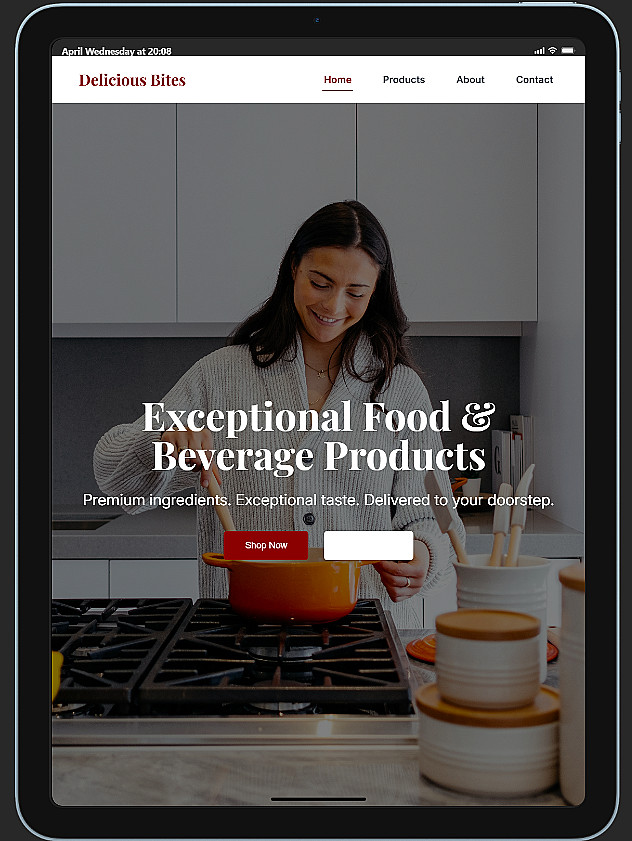 خبرة في بناء واجهات المستخدم بدقة عالية (مثل نموذج Delicious Bites المرفق).