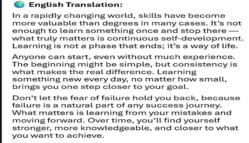 أنا بقدم لك ترجمة تعتمد على الفهم العميق للنص، مش الترجمة الحرفية. هدفي إن أي شخص يقرأ النص — سواء مستواه في اللغة قوي أو متوسط — يفهم نفس الفكرة بسهولة ووضوح.