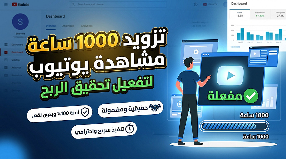 تفعيل الربح: 1000 ساعة مشاهدة حقيقية لقناتك على اليوتيوب بضمان.