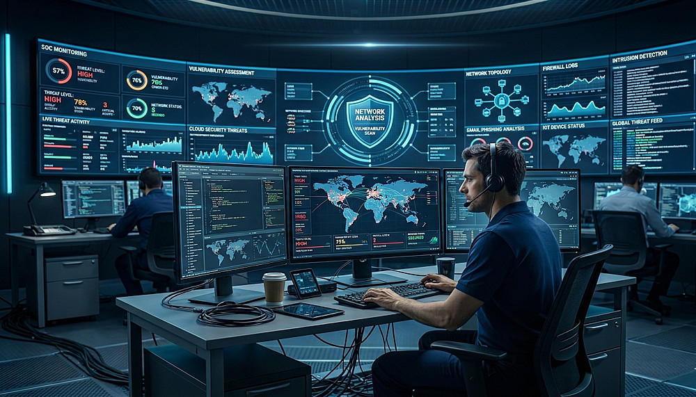 تحليل وفحص أمني لشبكتك (SOC / Vulnerability Assessment)
