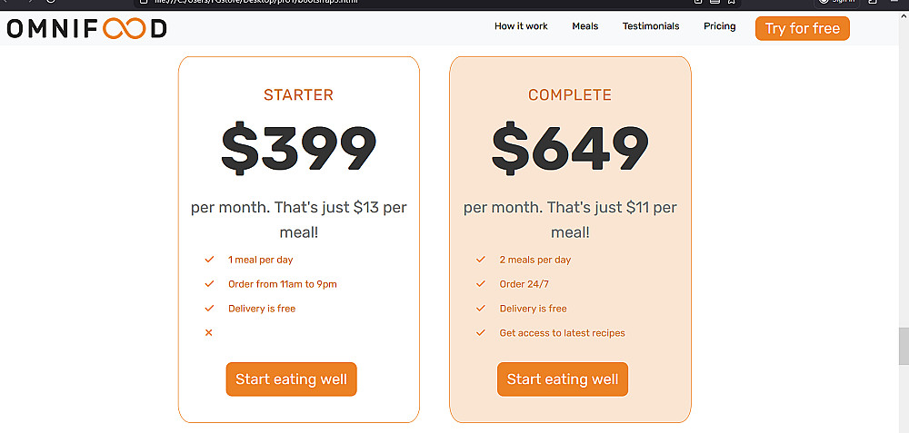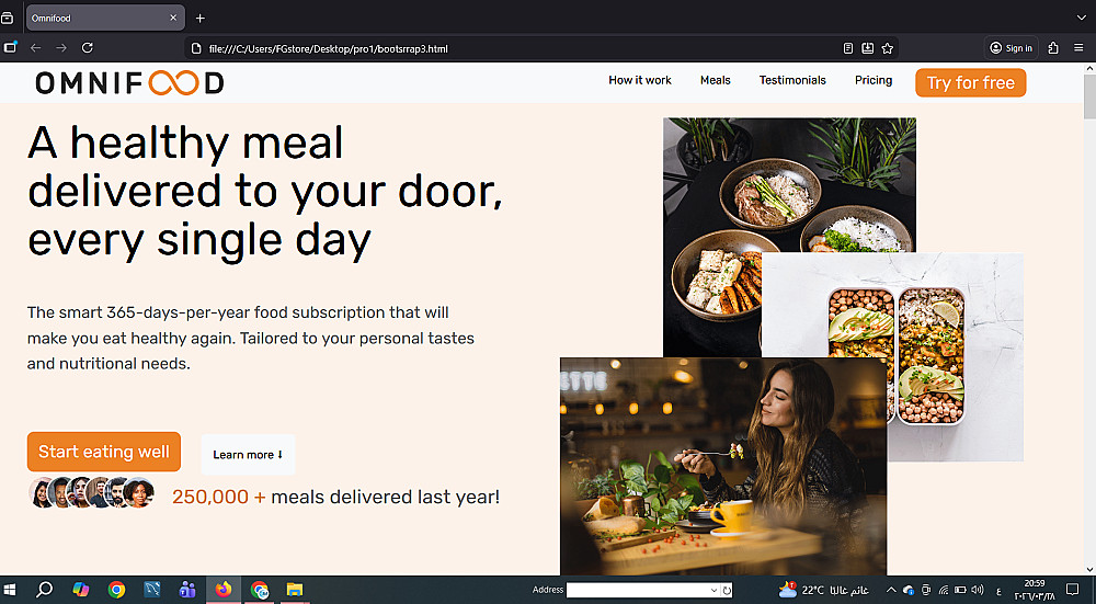 تطوير واجهة Omnifood احترافية، متجاوبة وسريعة التحميل