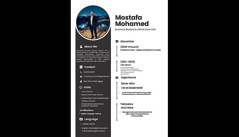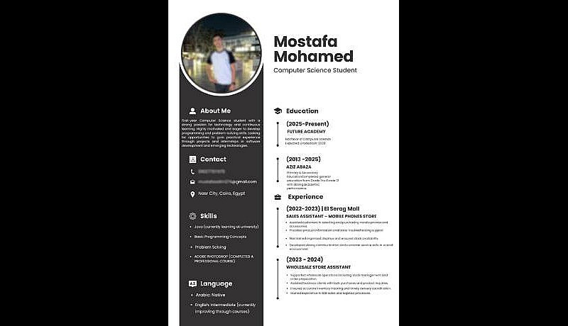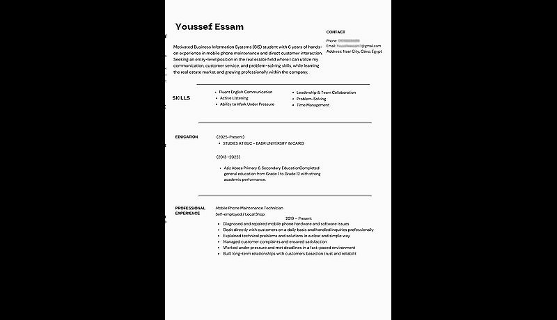 أقدم لك خدمة كتابة وتنسيق CV احترافي ومتوافق مع أنظمة ATS، بحيث يكون منظمًا، واضحًا، وجاهزًا للتقديم على فرص العمل أو التدريب.