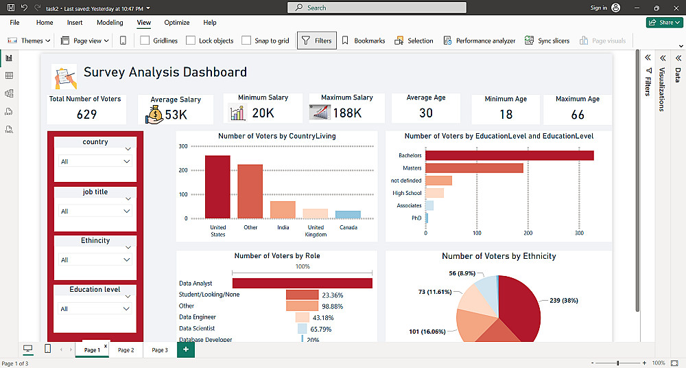 -تسليم Dashboard واحد كامل يحتوي على 3 مؤشرات أداء رئيسية (KPIs) و4 رسوم بيانية/Charts.