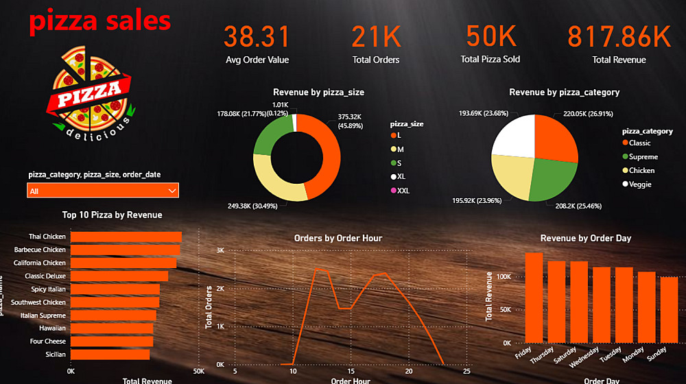 تحليل الأصناف: كشف أن بيتزا "Thai Chicken" هي الأعلى دخلاً، مما يساعد في توجيه الحملات التسويقية.