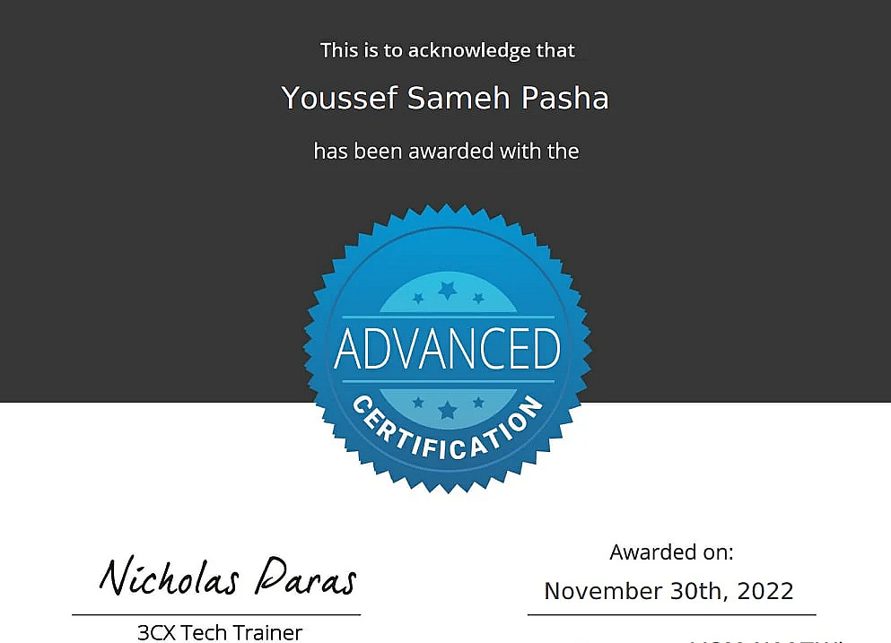 أنا يوسف، متخصص معتمد بمستوى Advanced في 3CX، وخبير في تصميم حلول CFD وتحليل البيانات.