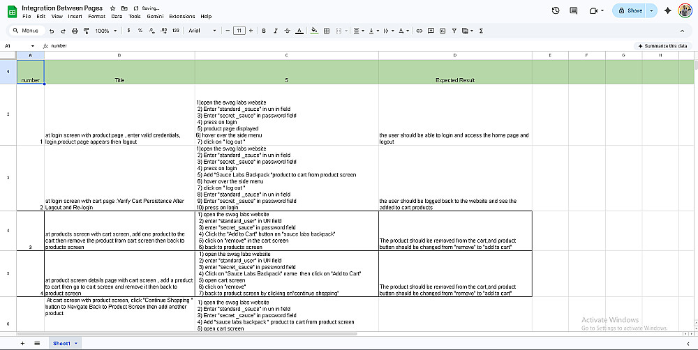 توثيق لحالات الاختبار التي تم تنفيذها.
