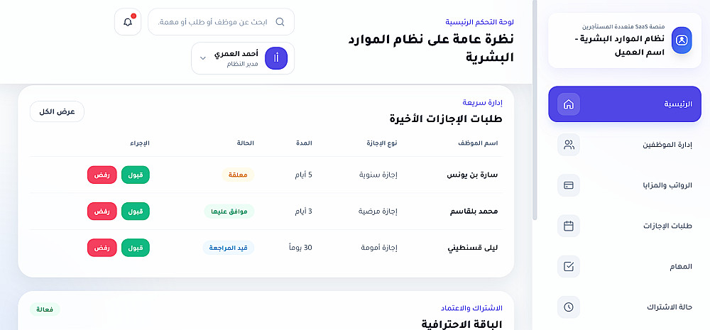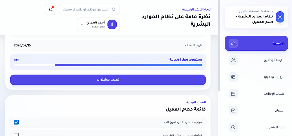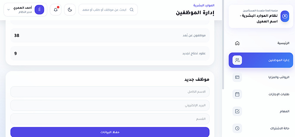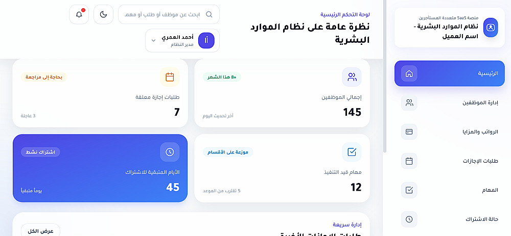 دعم كامل للغة العربية (RTL) بتصميم عصري (UI/UX) نظيف ومريح للعين.