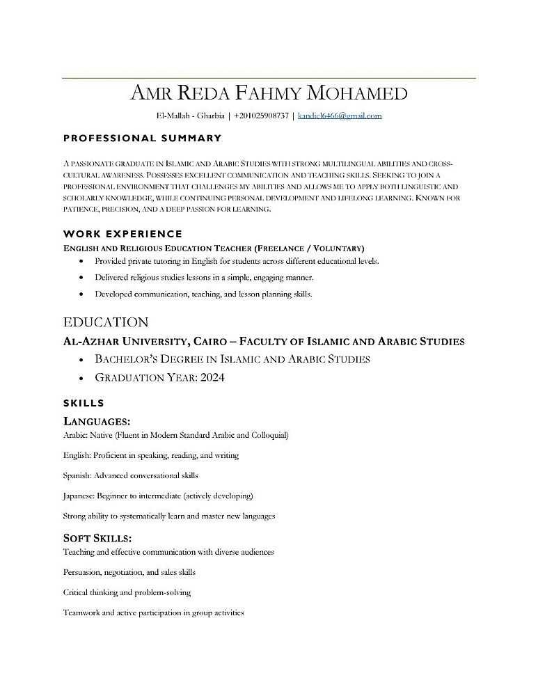 أنا أقدم لك خدمة تصميم وتطوير سيرة ذاتية احترافية متوافقة مع أنظمة ATS (أنظمة تتبع المتقدمين) التي تستخدمها الشركات العالمية لتصفية السير الذاتية.