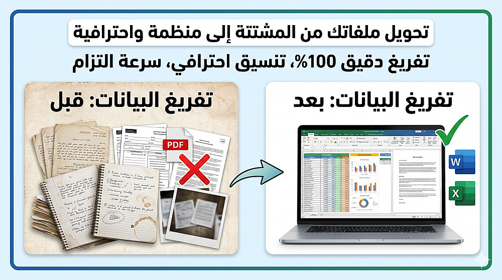 تفريغ احترافي وتنسيق 5 صفحات (حوالي 1250 كلمة) بدقة يدوية 100% من(PDF أو صور) إلى Word أو Excel.
