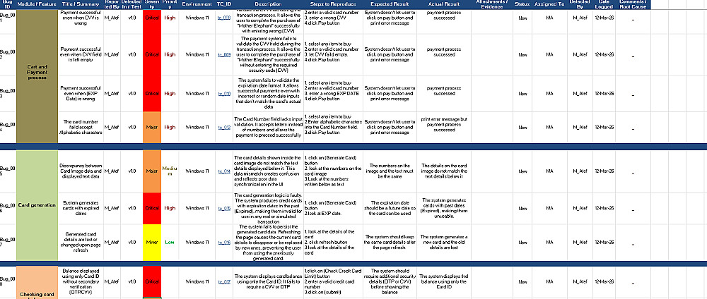 (Output): ملف Excel يحتوي على تقرير عيوب (Bug Report) احترافي وشامل.
