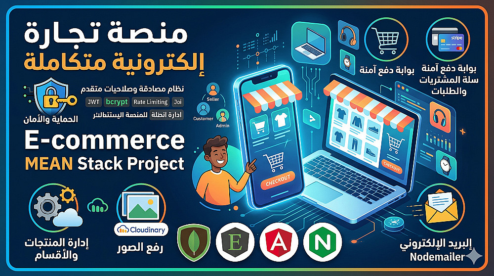 عن متجر إلكتروني شامل (Full-stack) تم تصميمه وتطويره بالكامل باستخدام تقنيات MEAN Stack (MongoDB, Express.js, Angular, Node.js).