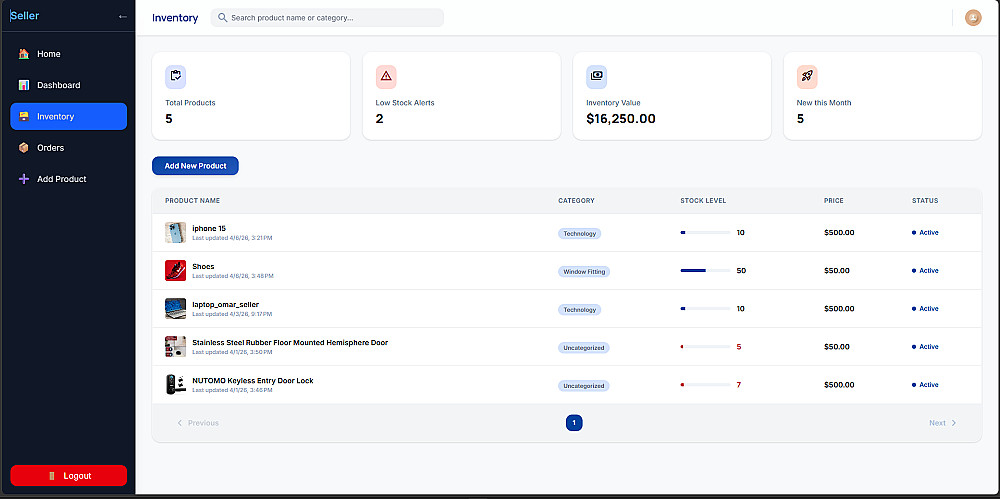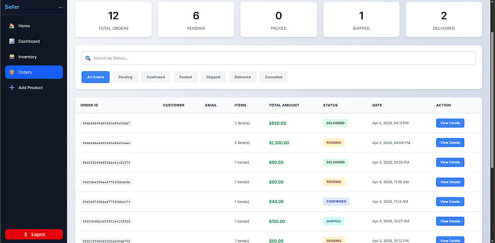 نظام مصادقة وصلاحيات متقدم: تسجيل دخول آمن باستخدام (JWT & bcrypt) مع إدارة أدوار المستخدمين (عميل Customer، بائع Seller، ومدير Admin) مع تصميم dashboard لكلا من customer , admin , seller .