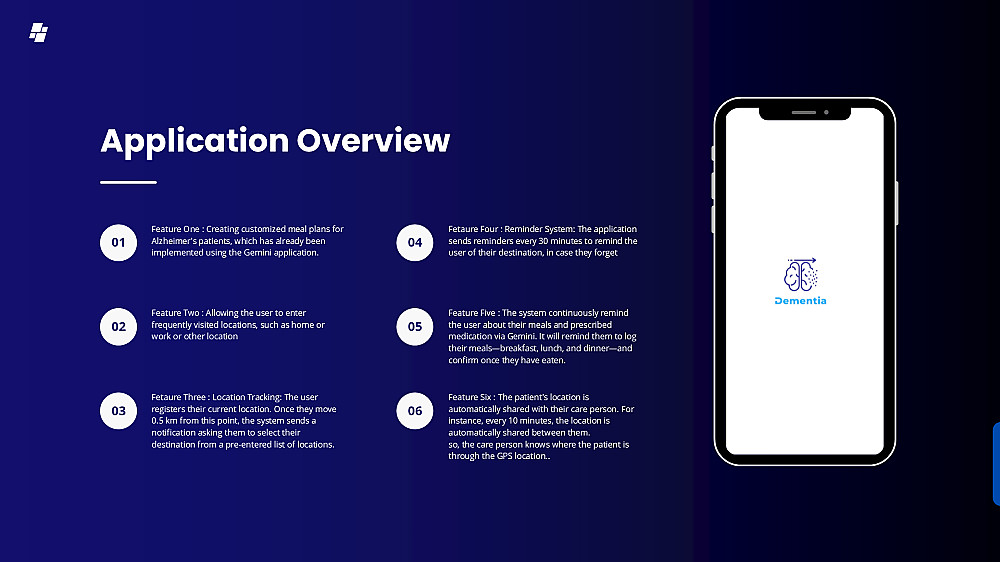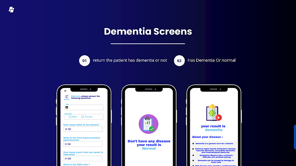 dementia هو تطبيق يهدف إلى مساعدة مرضى الزهايمر والأطباء المتابعين لحالاتهم من خلال حلول تقنية ذكية تسهل التشخيص والمتابعة اليومية والعلاج المساند.