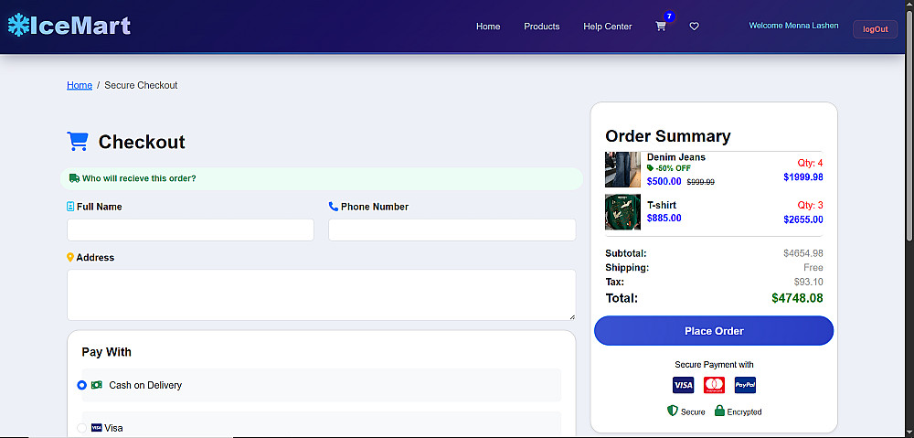 إمكانية إضافة طرق دفع (مثل Cash / Visa) في حالة الـ Checkout