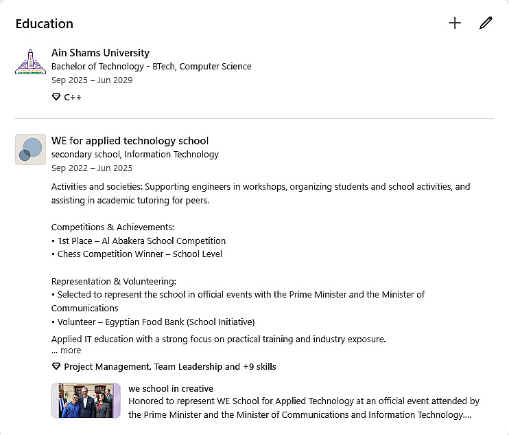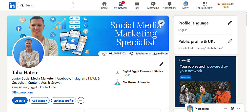 مرحبًا! أنا طه، أساعد حديثي التخرج والباحثين عن عمل في بناء بروفايل لينكدإن احترافي وجذاب يبرز مهاراتهم وخبراتهم بطريقة مرتبة وواضحة.