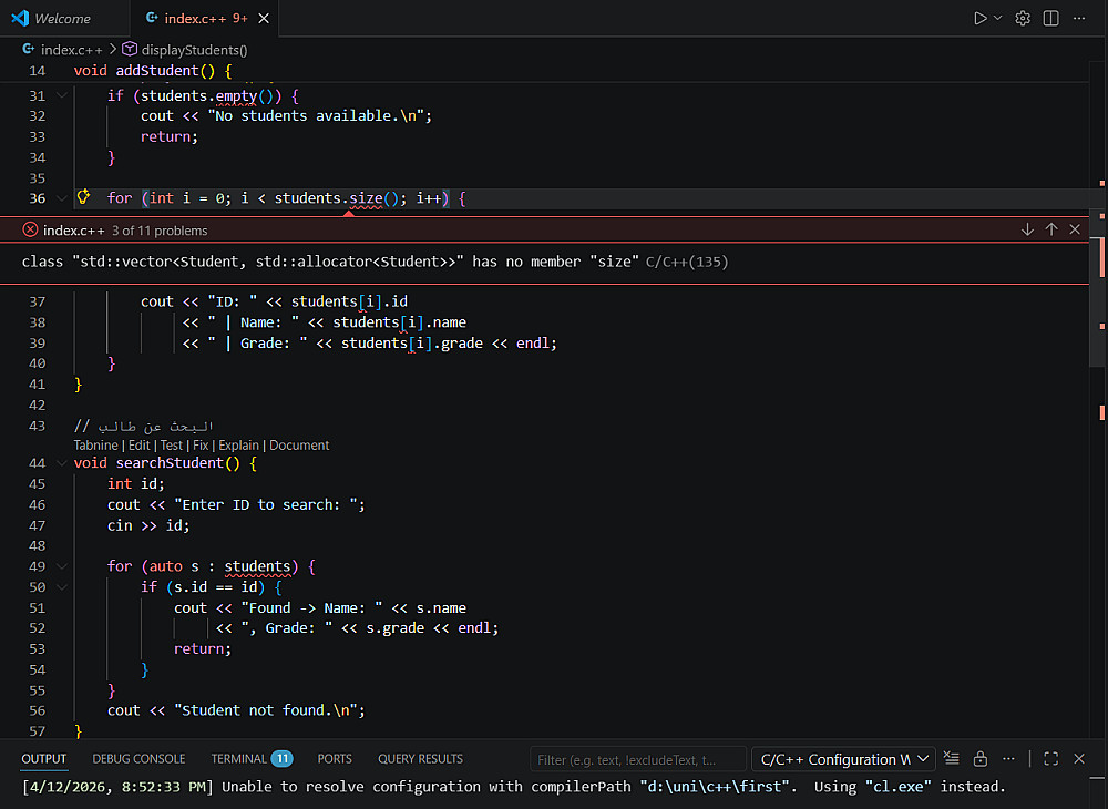 أقدّم خدمة إصلاح المشاكل والأخطاء البرمجية في مشاريع ++C، سواء كانت مشاريع تعليمية أو جامعية أو تطبيقات عملية.