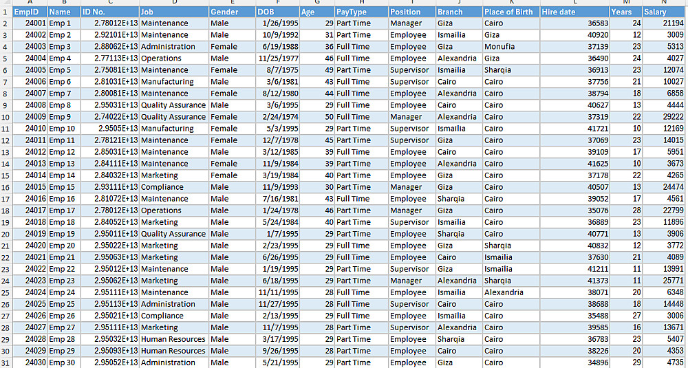 تحليل وتنظيف ملف بيانات (Excel/CSV) يحتوي على ما يصل إلى 500 سطر.