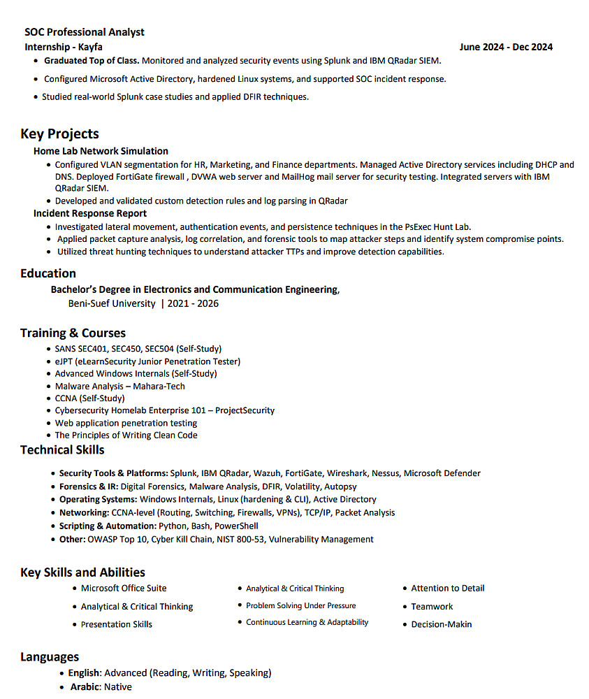 - حتى لو عدّيت الـ ATS، الـ HR بياخد من 6 لـ 15 ثانية بس يبص على الـ CV لازم تضرب في العلامة دي.