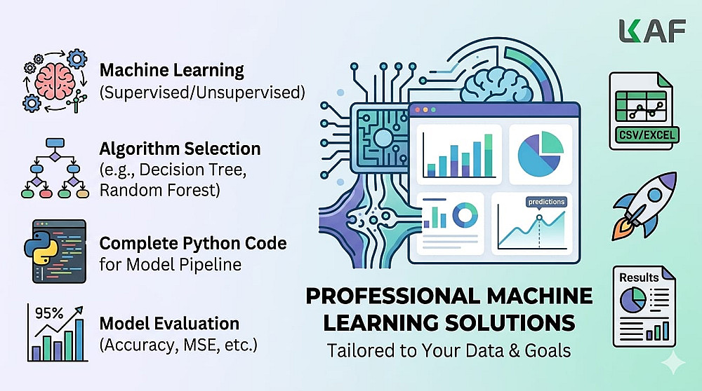 هل لديك بيانات وتريد استخراج رؤى قيمة منها؟ أنا هنا لمساعدتك! سأقوم بتحليل بياناتك بعناية فائقة واختيار النموذج الأمثل من بين مجموعة واسعة من خوارزميات تعلم الآلة المتقدمة (Decision Tree, Random Forest,KNN, etc.). ستحصل على كود Python كامل، نظيف، وموثق بالكامل، يغطي جميع المراحل من تنظيف البيانات وحتى تقييم النموذج بمقاييس دقيقة (Accuracy, Precision, Recall, MSE حسب المشكلة). بالإضافة إلى ذلك، سأقدم لك تقريراً مفصلاً وتوصيات ختامية لمساعدتك على اتخاذ قرارات ذكية مبنية على البيانات. رضاك هو أولويتي