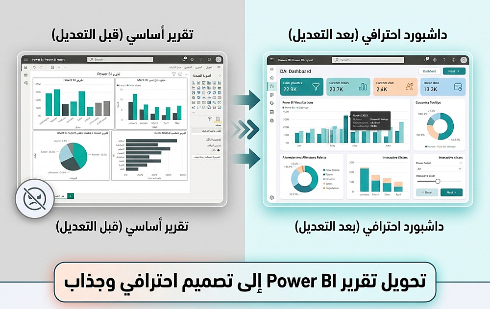 تحويل لوحة بيانات Power BI من مجرد أرقام إلى تصميم احترافي وجذاب.
