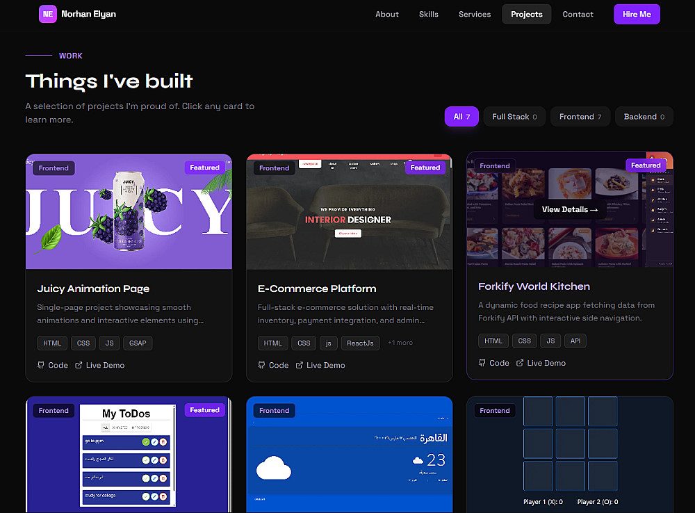 أقوم بتصميم وتطوير Portfolio شخصي احترافي يعرض مهاراتك ومشاريعك بشكل عصري وجذاب.