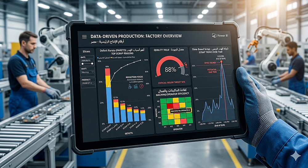 تحليل بيانات الإنتاج لتقليل الهالك وزيادة أرباح المصانع (Data-Driven Production)