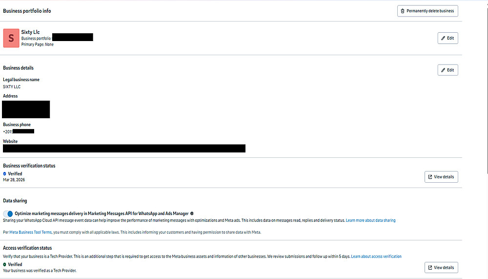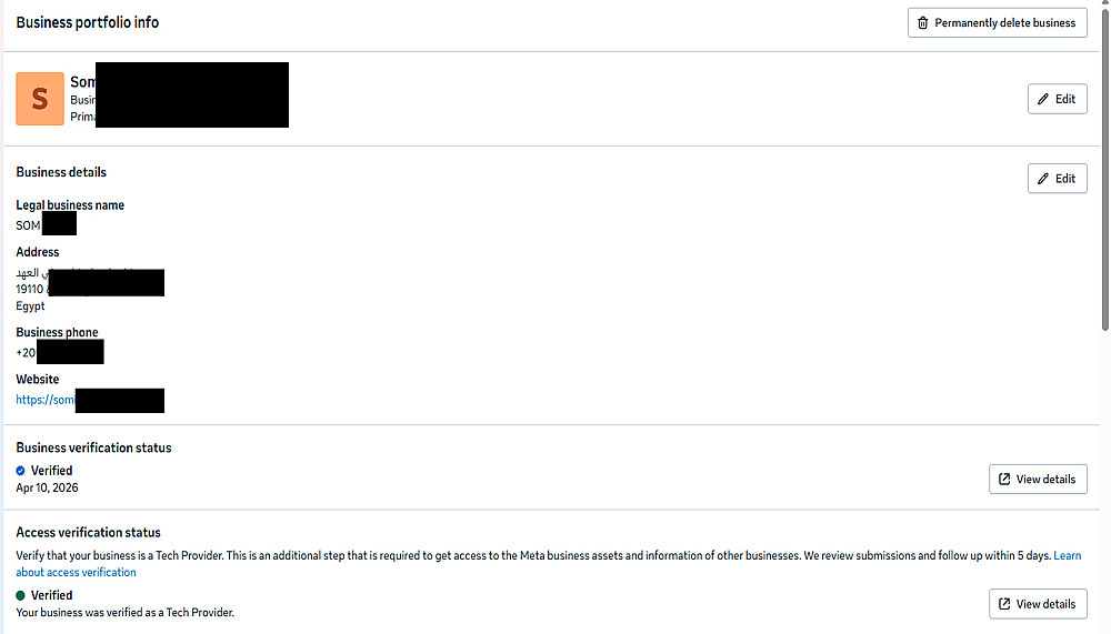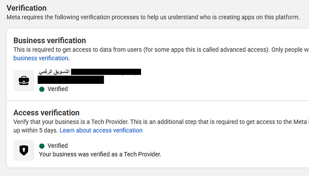 توثيق مدير أعمال ميتا Meta Business Manager و Tech Provider