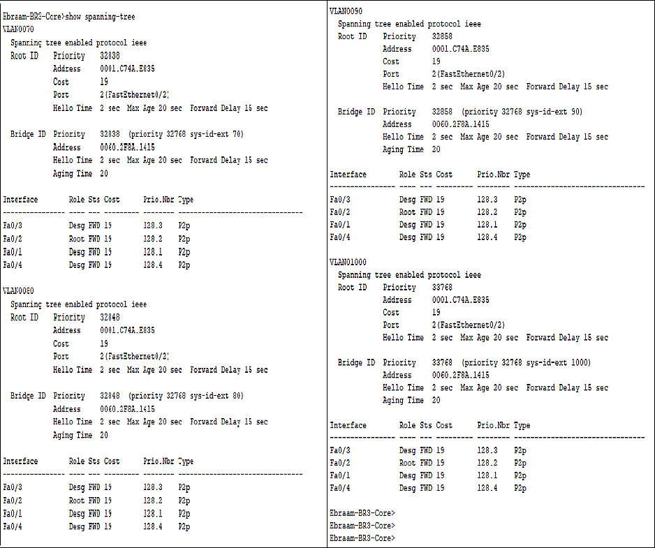 سيتم إعداد VLANs وInter-VLAN Routing وتفعيل 802.1Q Trunking بين السويتشات، بالإضافة إلى إعداد DHCP لتوزيع عناوين IP تلقائيًا وتفعيل SSH للوصول الآمن إلى أجهزة الشبكة. كما يتم استخدام STP لمنع حدوث حلقات داخل الشبكة.