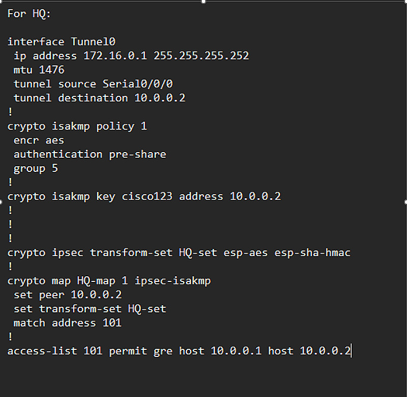 تنفيذ Site-to-Site VPN باستخدام IPsec لتأمين الاتصال بين الفروع، مع إعداد SSH لضمان إدارة آمنة لأجهزة الشبكة.