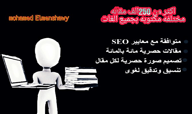 سأقدم لك مقالات حصرية 500كلمه متوافقة مع معايير السيو وذات جودة عاليه ستساعدك فى رفع ترتيب موقعك وتحسن ظهره فى محركات البحث , يمكن تقديم الخدمه كبحث علمى , سيحتوى المقال على بعض الصور التوضيحية , وسأقوم بتنسيقه ليلائم اختيارك