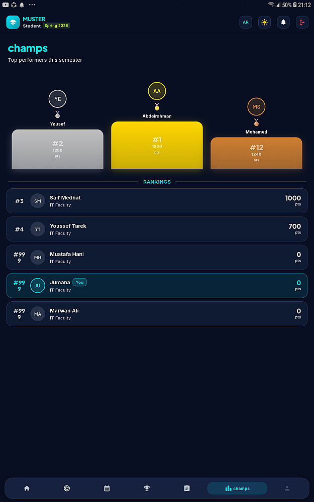 • لوحة المتصدرين — ترتيب الفصل الدراسي وأفضل الأداءات