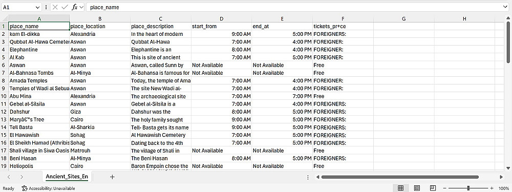 2) تسليم البيانات في ملف Excel أو CSV منسق ومرتب.
