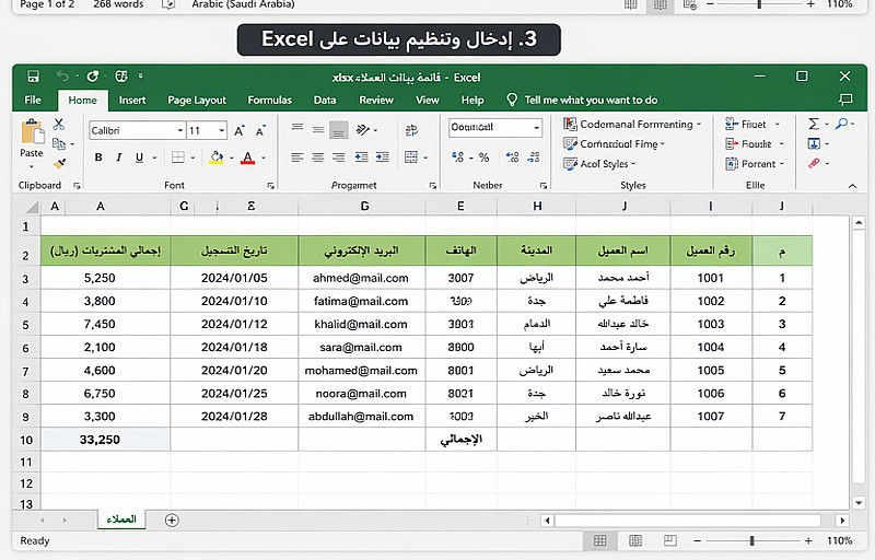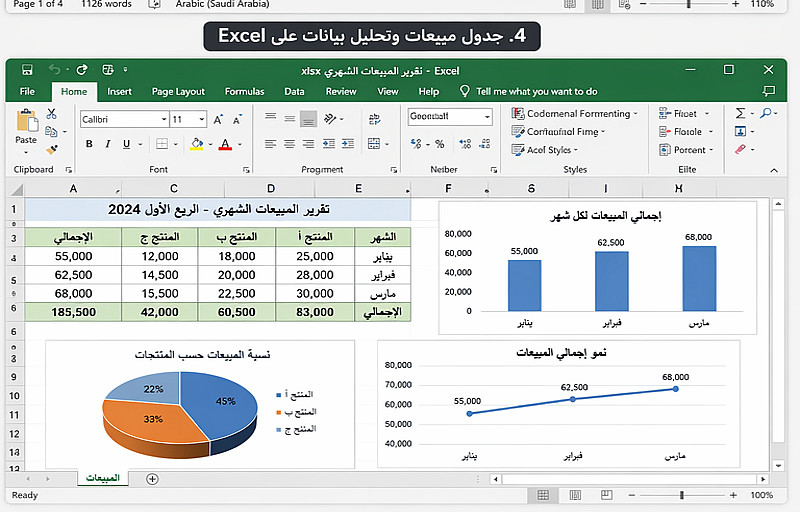 تنظيم الجداول بشكل واضح مع استخدام تنسيقات تسهّل قراءة البيانات.