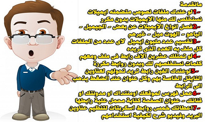1- لو عندك ملفات نصوص متضمنه ايميلات نستخلص لك منها الايميلات