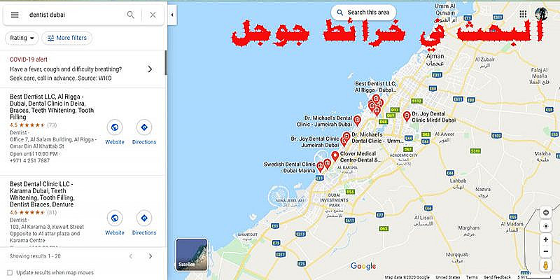 مثال : عيادة طبيب اسنان في الرياض السعودية او شركة في دبي .