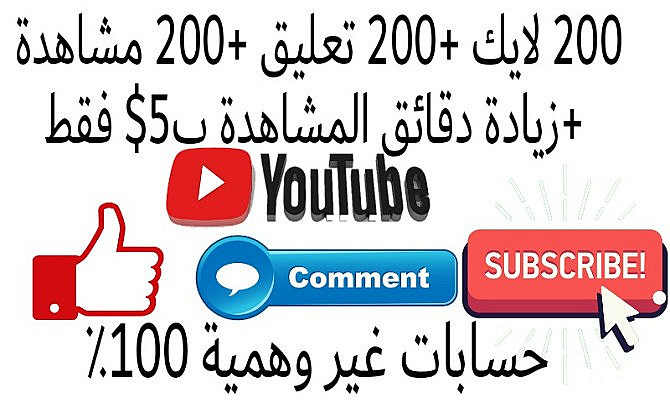 سأقدم لك 200 لايك +200 تعليق +200 مشاهدة + زيادة دقائق المشاهدة على اليوتيوب.