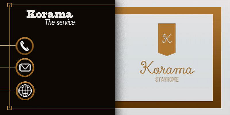 اقدم خدمة تصميم بطاقات عمل او بطاقات شخصيه كمثال هذه الصوره وجهه خلفيه لبطاقة عمل كمثال لشركة باسم Korama ومكان كلمة The service نضع نوع العمل التى تقوم بها الشركة